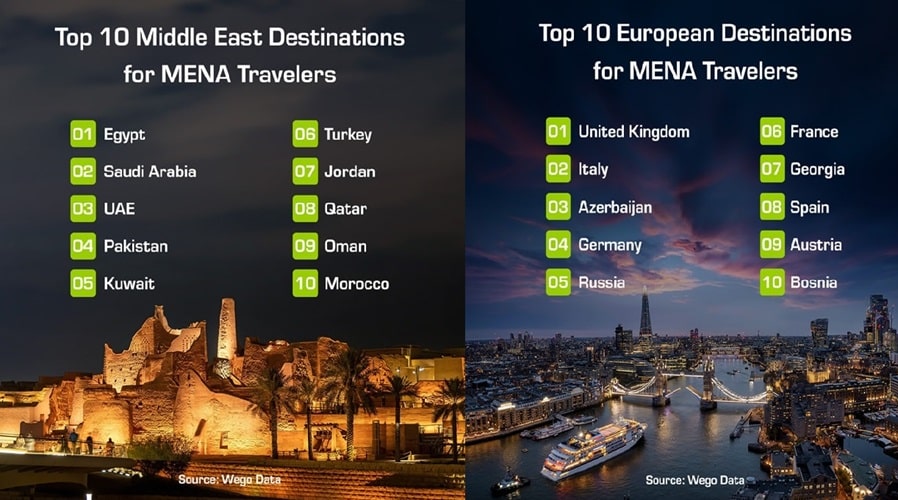 Wego data showed that Saudi Arabia, Egypt, India and UAE remain the top travel destinations in 2024 Egypt and Saudi Arabia have maintained an almost uninterrupted #1 and #2 reign since Wego started tracking in 2014 Biggest climbers among top 25 is Azerbaijan (#23, +6) and outside top 25, Russia (#26, +9) and Bosnia & […]